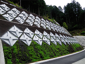 ・受圧板の軽量化、施工性の向上、自然と調和した景観、植生を考慮した形状が期待できる