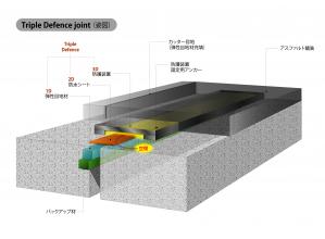 ・防水補強シート(ブチルゴムとダイニーマを組み合わせた粘着シート仕様)を用いて合材をラッピングする構造とした。