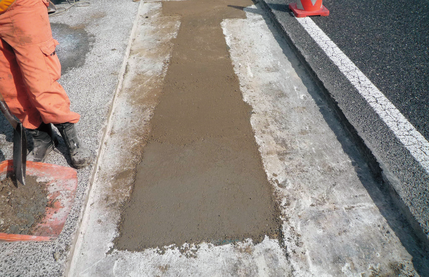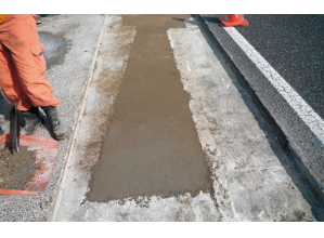 従来の超速硬コンクリートを、超速硬ポリマーセメントモルタルまたは超速硬ポリマーセメントコンクリートに変えた。