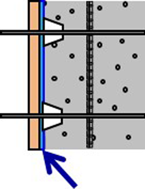 ・型枠のせき板表面を、化粧合板から高い撥水性を有する熱可塑性樹脂シートに変えた。