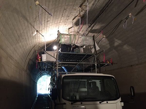 ・トンネル坑内に注入プラントを搬入する場合:注入プラント1箇所当りの設置スペース0.83m×5.88m(4.9m2)