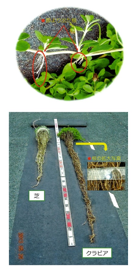 ・張芝等より土中深くに根を張って法面崩壊防止となるため、品質の向上が図れる。