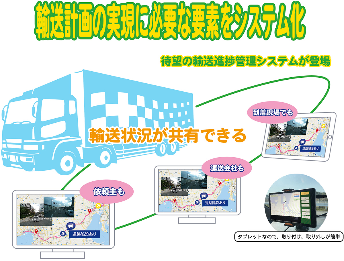 ▪運行車両の到着時間等、運行状況をインターネット環境とブラウザのみで情報を共有できるようにした。
