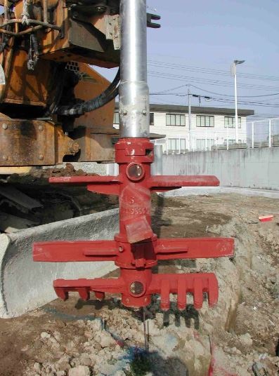 ・スラリー吐出口を改良し、上下の吐出口を切り替えられるため、杭径の小さい場合の吐出量減少からの吐出圧力低下による改良体強度のばらつきの低減が期待できる