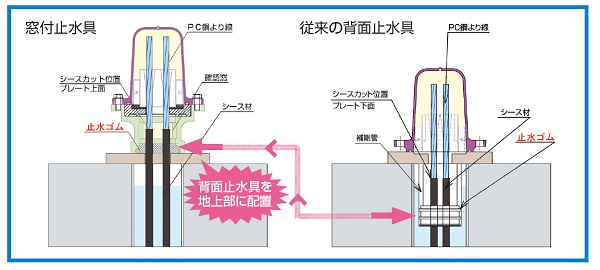 ・グラウンドアンカーの支圧板下部構造(補剛管と止水ゴム)を支圧板の下部から上部に変え、確認窓を設けた。