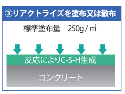 ・2剤の成分の反応よりコンクリート中にC-S-Hが生成する。このことにより、透水抑制及び塩水浸透抑制に効果がある。