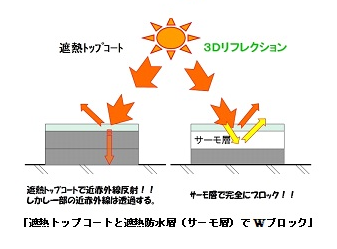 2.トップコートと防水層の両方に遮熱性能を付与したことにより、