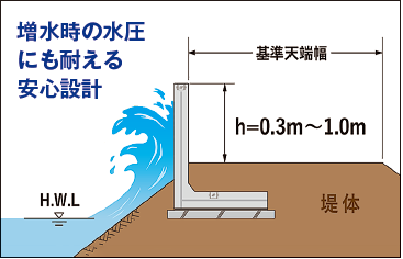 4) 堤外側の高所作業になる型枠の設置・撤去が不要になることから、現場作業の安全性の向上が図れる。