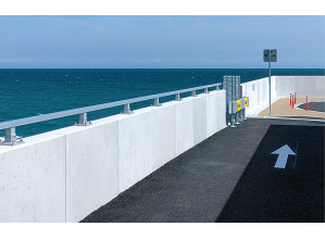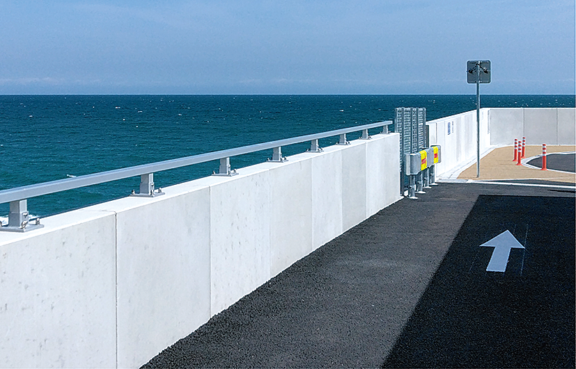 パラペット構造の特殊堤を現場打ちコンクリートの構造からプレキャストブロックとして製品化させた。
