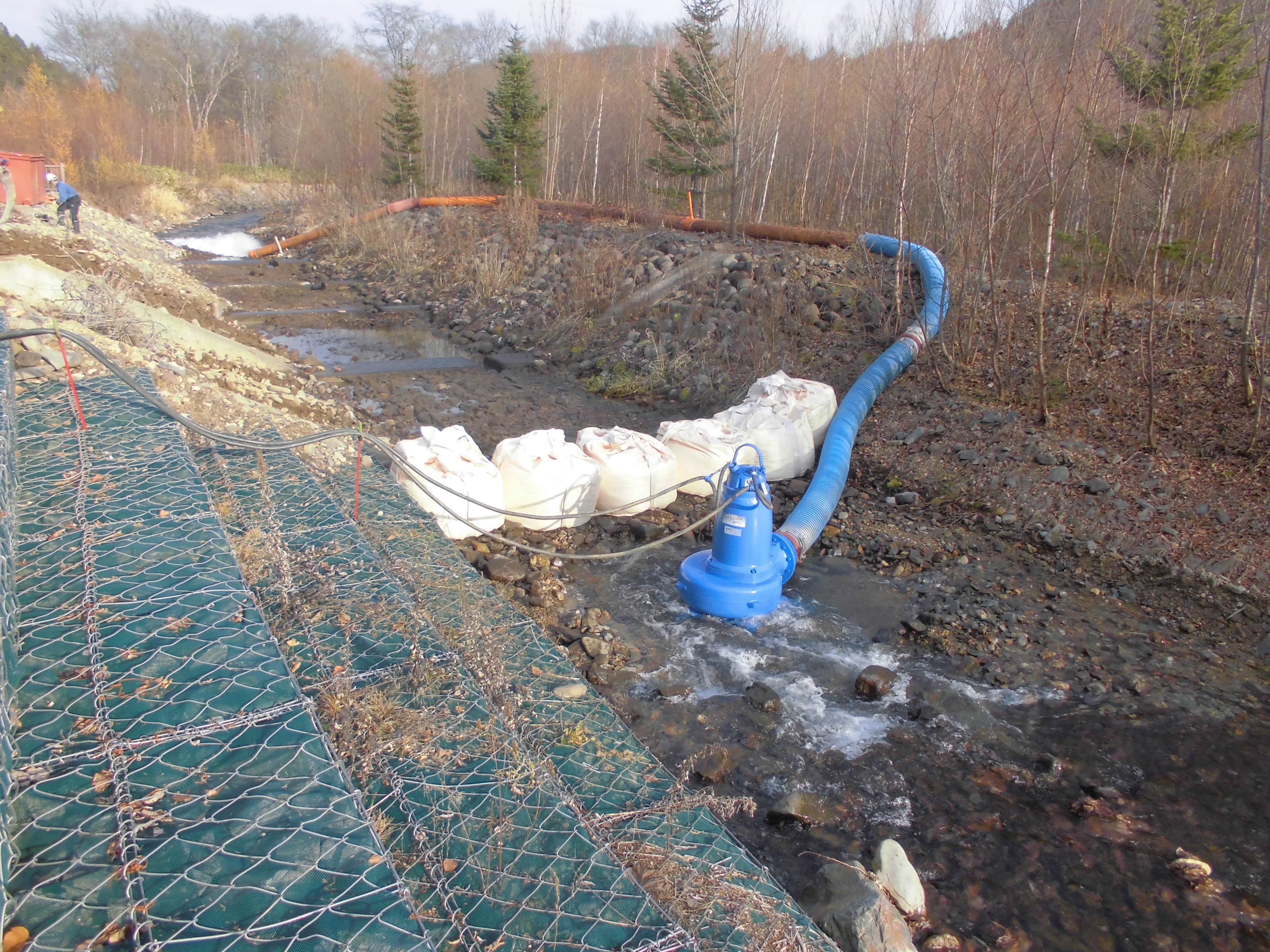 普通型水中ポンプを、大容量水中ポンプシステムに変えた。