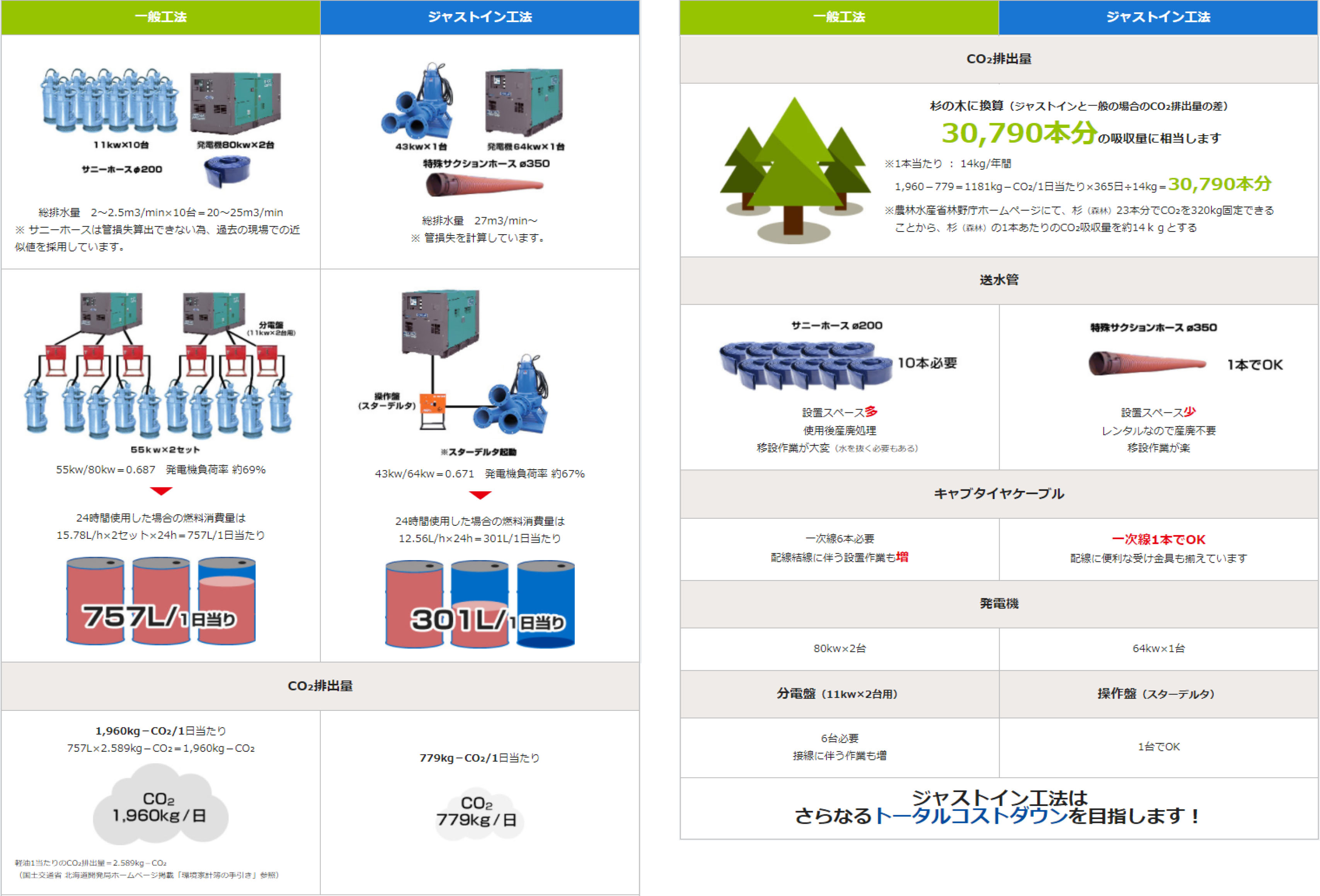 ・ポンプ及び発電機の台数削減により、燃料費が削減され経済性が向上する。