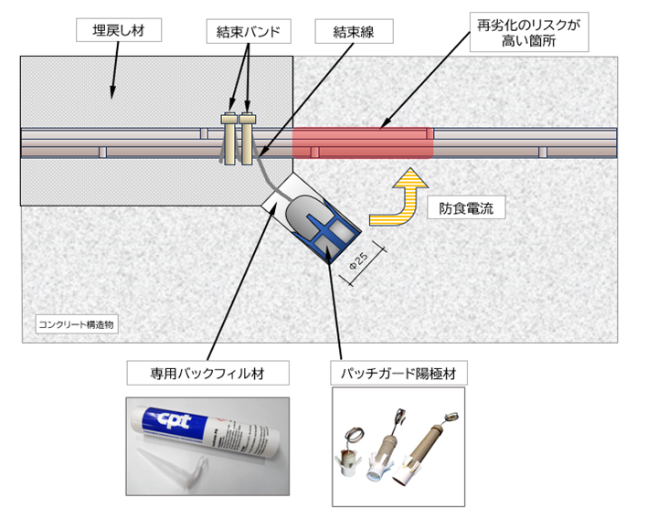 パッチガード工法(内部挿入型犠牲陽極材)