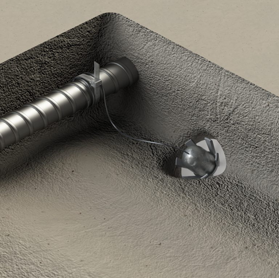 鉄筋コンクリート構造物の再劣化防止や、塩害・中性化による腐食抑制に効果的な犠牲陽極材で、鉄筋と陽極材の接続には耐久性に優れたチタンワイヤーを採用している。作業員による施工のばらつきを低減するため、バンドを用いてワイヤーを鉄筋に確実に固定することで、ワイヤーと鉄筋間の導通不良を抑制し、安定した防錆効果が得られる。また、本工法は陽極材を既設コンクリート内へ削孔挿入して設置するため、補修材による電気抵抗値の増加等の影響を受けにくく、良好な電流分布により高い防錆効果が得られる。