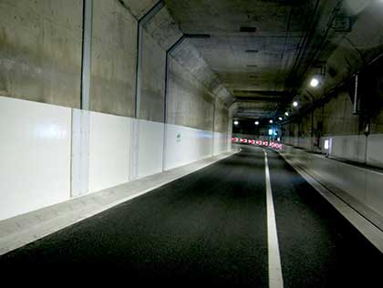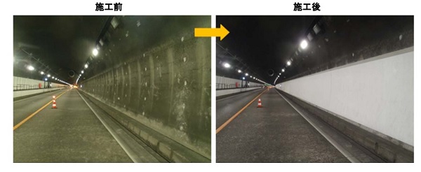 CC-A塗装から、無溶剤・無機質の塗料を用いたトンネル内装塗装工法に変えた