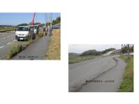・舗装が草の根で隆起したり、舗装から直接雑草が生えていたりしていないところ。(これらの現象がみられる場合本格的な舗装補修が必要となる。不具合箇所が部分的で小型カッターで補修可能な場合は樹脂系常温補修材で別途補修する。)