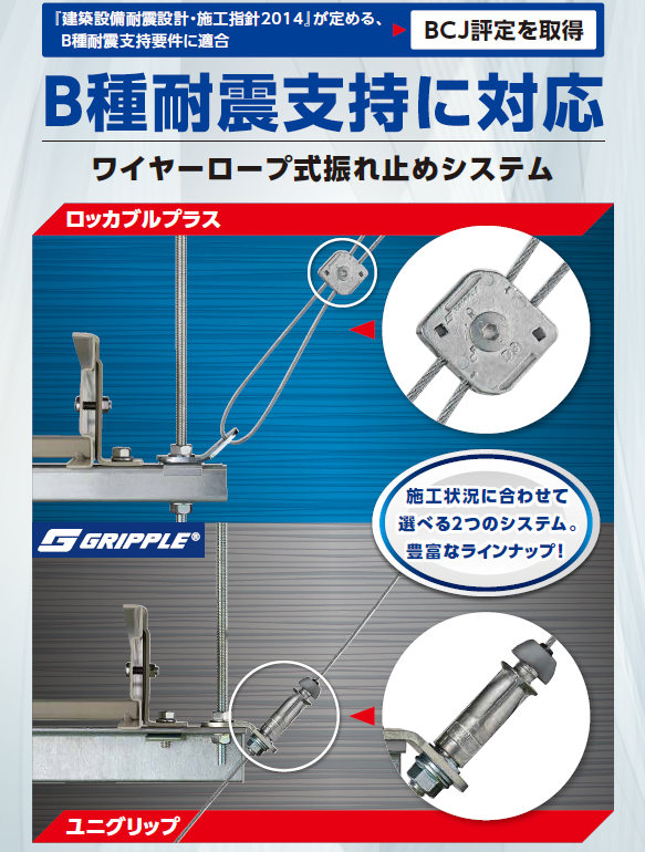 シンプルな構造のため、振れ止め措置が必要な設備全般で使用可能