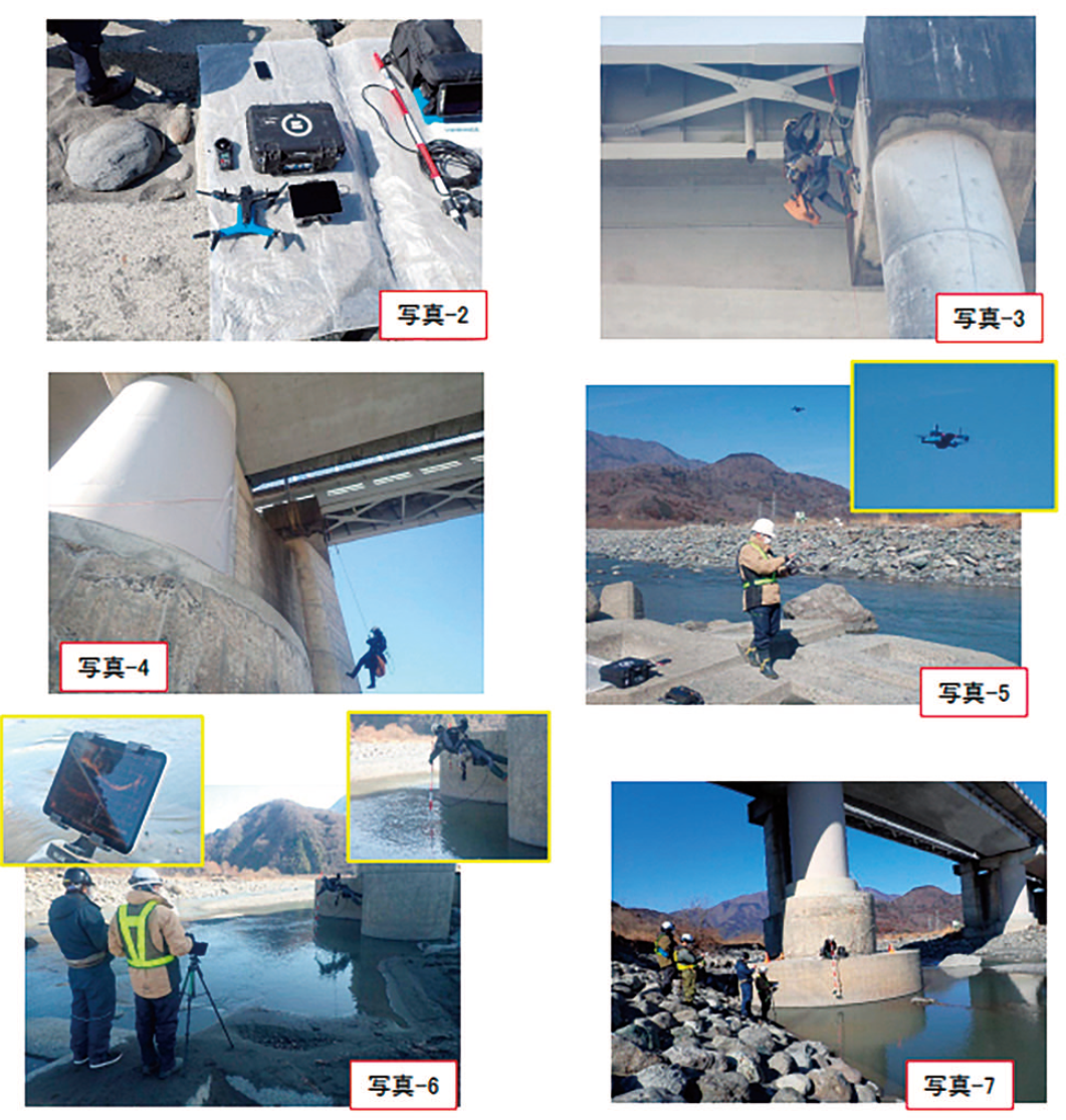 ①計測機器の搬入(写真-2:ドローン、ソナー等)