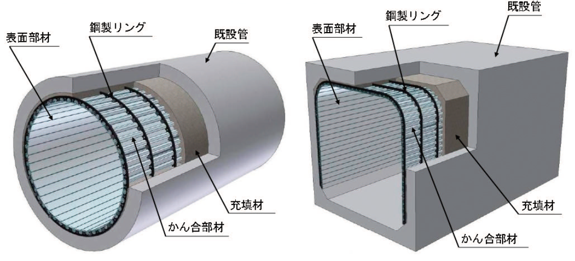 (1) 鋼製のリングを使用しているため、既設管の流下性能を満足させながら、破壊や腐食によって減肉した鉄筋コンクリート管を新管と同等以上の強度に復元できる。