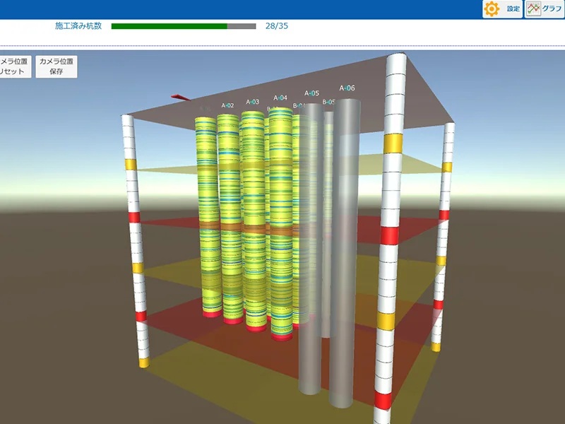杭・地盤改良施工情報可視化システム 3Dパイルビューアー