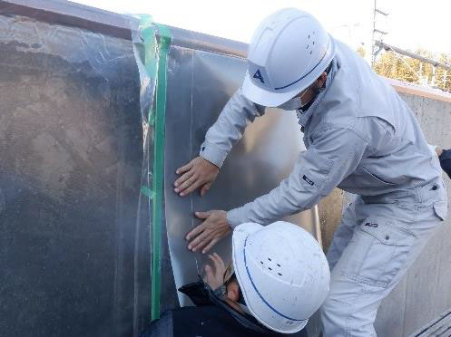 1. 剥落防止層の形成について、工場加工品を接着剤で貼付ける方法に変更した