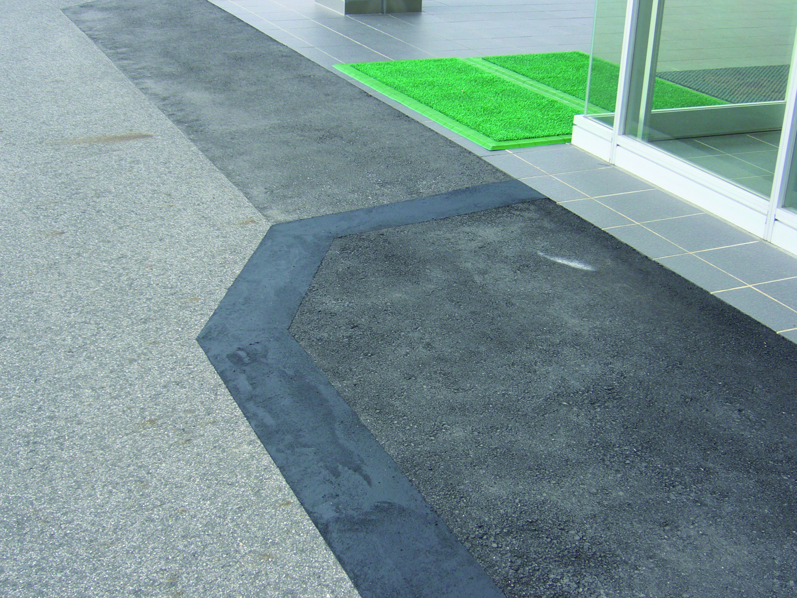 ・速硬型のポリマーセメントに変えたことにより、タイヤのねじり作用に対する飛散抵抗性が向上し、品質が向上する。