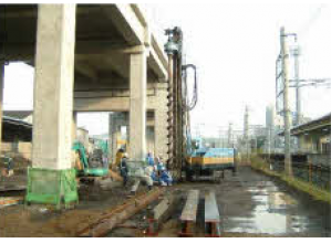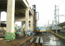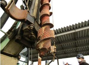 ・泥水循環方式から小型のアースオーガによる乾式掘削方式に変えた。