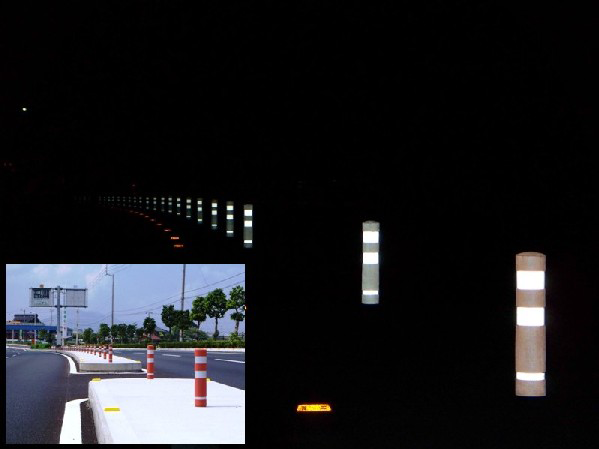 ▪車両踏みつけによる反射テープの剥離後も、再帰反射塗装効果による長期にわたる視線誘導が可能。