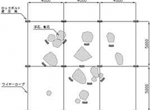 従来工法の場合、落石は網の中を動き、系時的に徐々に不安定な状態になっていくという危険性があったが、本工法は、高強度で柔軟性のある厚ネットとワイヤロープで格子を形成し、さらにその交点部もアンカーで固定することで、不安定土塊、浮石や転石をその場で押さえ込み動かさない工法であるため、従来工法のように除去、放置などで対処していた危険性はない。