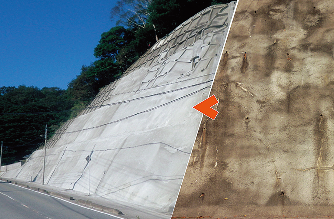 老朽化吹付法面取壊し工+ モルタル再吹付工