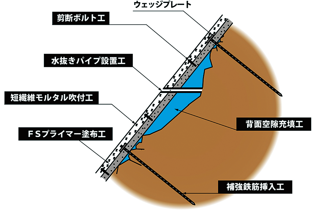 ● FS アンカーの打設で背面基岩の風化領域を補強する