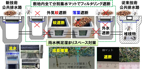 ・新たな成虫の出入は出来ず、ボウフラも成長出来ず、繁殖が不可能となり、周辺の蚊の個体数が減るため、感染症拡散確率を減少させ周辺環境の向上が図れる。