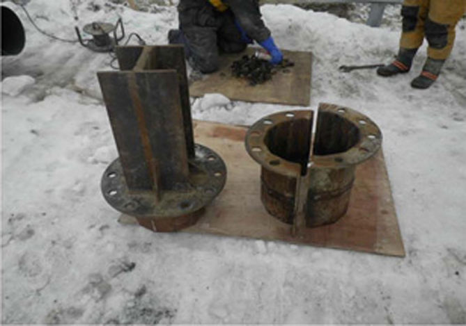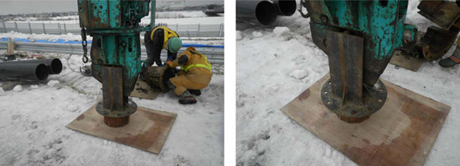 ・鋼管杭と打ち込み金具の着脱をボルト・ナット式とした。