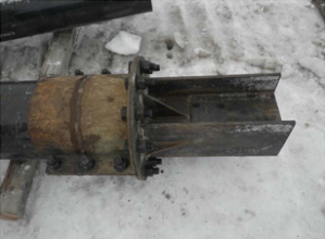 ・打ち込み金具のチャッキング部は、厚さ9mmの鋼板でH鋼ウェブ部を挟み込み厚さ27mmとして重ね構造とした。