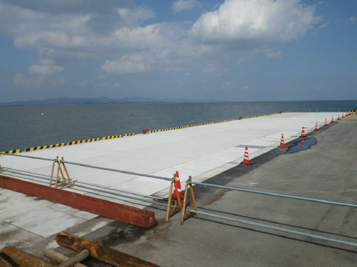プレキャスト桟橋・スラブは、海上施工中に波浪の影響を大きく受ける桟橋の上部工をプレキャスト化したもの