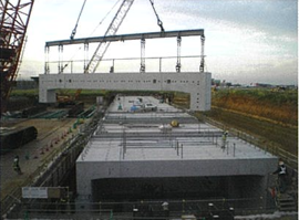 側壁をプレキャスト、頂・底板を現場打ちとした大型ボックスカルバート