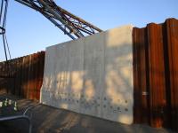 鋼矢板の上にプレキャスト竪壁がまたがり(Ride)、踏ん張っている防潮堤