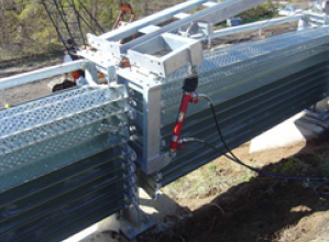 防雪柵を電動油圧装置と電動ウインチを用いて、建込および収納作業を行う技術