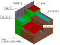 改良土とジオグリッドを組み合わせた補強土壁で、盛土のり面の急勾配化を可能にする。改良土とは、現地発生土に固化材および短繊維を混合させたもので、力学特性や対浸食性が向上。この改良土とジオグリッドの...