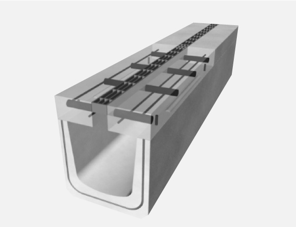様々な機能を備え、さらに低価格を実現した多機能型側溝。蓋はハイブリッド構造により全面グレーチング、全面スリットが可能。本体と蓋は、ロックピンで固定するため騒音もない。