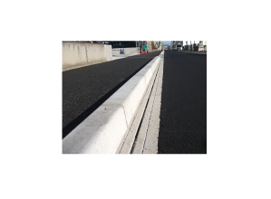 ノンスリップタイプの軽量化した排水性舗装対応のスリット側溝。