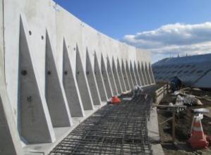 天端勾配可変(0~10%)が可能であり、道路勾配やのり面形状に合わせた製品。底版鉄筋突出しタイプのため、場所打ち底版の一体化が図れる。H3,100mm~H6,000mmまで、10cmピッチで対応。