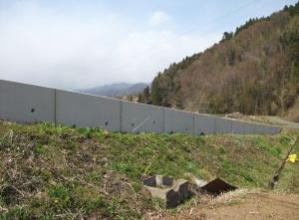 プレキャストL型擁壁と転落防止柵用の基礎を一体化させたフェンス穴付L型擁壁。粘性土タイプ。