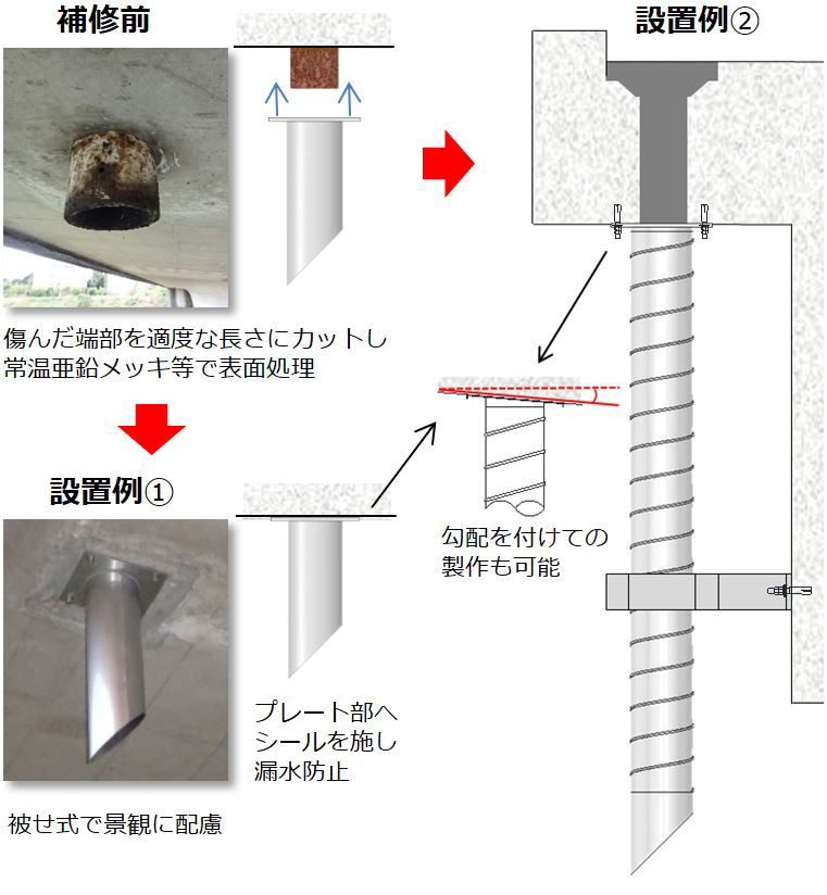 橋梁用 天板プレート一体型ステンレス排水装置(TS-PL_PIPE)
