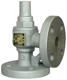 おもに蒸気・気体用に用いられる安全弁と、おもに液体用に用いられる逃し弁の中間に位置付けられた安全逃し弁。鋳鉄製従来品に比べ高さ寸法が小さくなっているので軽量化されている。(株式会社ベン従来品比)