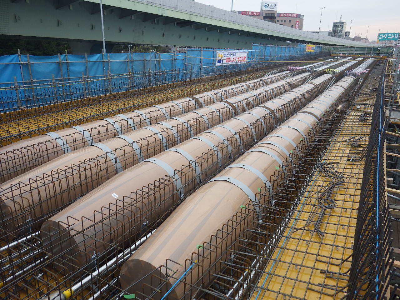 ・型枠上部の鋼製チャンネルによって、浮き上がり、曲がりを防ぐ