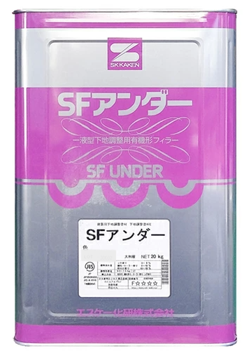 従来のセメント系フィラーの問題点であった乾燥性、耐エフロ(白華)性を改良し、各種水性仕上塗材との付着性を向上させた既調合タイプの有機系下地調整塗材である。 工程・工期の短縮ができ、高い物性(防水性、強度、密着性)が得られ、省力化に大きな効果を発揮する。