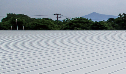 中空バルーン配合屋根用遮熱塗料。 中空バルーンを配合している中塗り層が熱と音を遮断し、遮熱性の上塗り層と組み合わせることで、より優れた遮熱効果を発揮する。 また、上塗りは白や淡彩色系から濃色系までカラフルな標準色がある。
