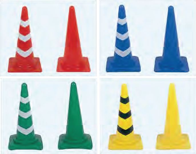 PE樹脂製 ・高さ:700㎜、ベース:380×380㎜、重量:約1㎏ ・高さ:900㎜、ベース:400×400㎜、重量:約2㎏ ・高さ:1,800㎜、ベース:950×950㎜、重量:約1.3㎏