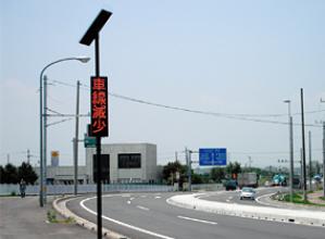 高速道路の中央分離帯に固定設置するソーラー電源のLED表示機である。表示内容は遠隔操作が可能で...