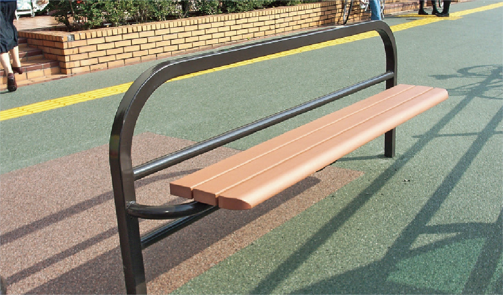 エクシーレ防護柵に座面の広いベンチを一体にした防護柵一体型のベンチである。